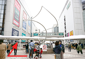 - オブジェの左側を進むと階段があるので、降りてまっすぐに進みます。