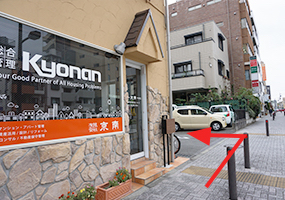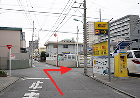 - 不動産総合管理「有限会社京南」のビルを左に曲がります。